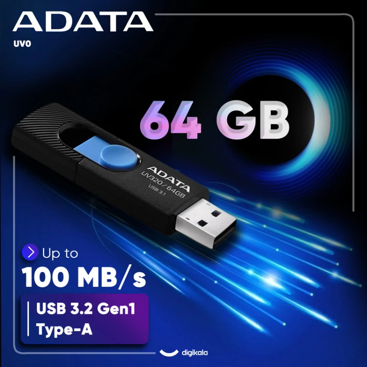 مدل «UV320» از سری محصولات فلش میموری شرکت «ای دیتا» (ADATA) است که در ظرفیتهای 8 تا 64 گیگابایتی و در رنگهای مختلف عرضه میشود. این فلش میموری از حافظه 64 گیگابایتی بهرهمند است؛ با این مقدار ظرفیت، حجم بسیار زیادی از اطلاعات؛ از قبیل موسیقی، فیلم و ... را میتوانید همیشه در کنار خود داشته باشید . در راستای طراحی جمعوجور، شرکت ای دیتا بر روی UV320 یک کلید تعبیه کرده است که با فشار دادن آن به جلو، درگاه USB به بیرون هدایت میشود و برای برگرداندن آن به داخل، بایستی کلید را به عقب بکشید. درگاه USB این حافظه فلش USB 3.1 است و از سرعت استاندارد انتقال اطلاعات 10 گیگابیت بر ثانیه برخوردار است. این فلش میموری با بیشتر دستگاههای الکترونیکی اعم از لپ تاپ، کامپیوتر، تلفن هوشمند، تلویزیون هوشمند، سیستم صوتی خودرو و ... سازگاری دارد. حافظه فلش UV320 در برابر آب، گردوغبار و ضربه مقاوم نیست؛ بنابراین هنگام استفاده، مواظب صدمات احتمالی باشید
